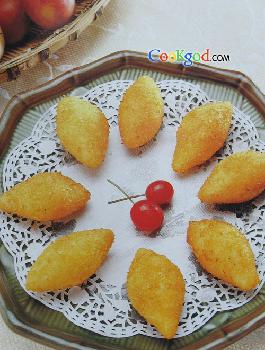用料主料:土豆泥、糯米粉、虾仁、鸡腿肉丁、猪肉丁、咖喱粉配料:面包糠、鸡蛋、洋葱末调料:盐、味精、糖、胡椒粉、咖喱粉、油