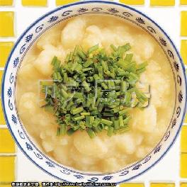 土豆2只,香葱4根,盐1茶匙(5g),鸡精1/2茶匙(3g),白胡椒粉1茶匙(5g),高汤(或水)3汤匙(45ml),油1汤匙(15ml)