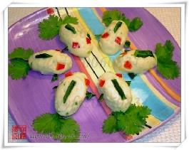好了,可爱的美味小金鱼就完成了。当然如果不想那么麻烦,就直接做成小圆球好了。或者直接吃也是可以的。但是你真的不想试试吗?拿出儿时做手工的劲头来吧~看看你的童心还有几分,试一试自己有没有艺术细胞^_^