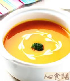 橄榄油45公克,香叶3片,蒜头35公克,洋芋300公克,南瓜200公克,鲜奶油适量,原味高汤3罐,鲜鸡晶1/2小匙,黑胡椒5公克,糖25公克,水500cc