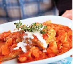 3.锅内入少许油,用小火把鲷鱼慢慢煎黄,然后倒入蕃茄块和马铃薯块,加入调味料煮15分钟即完成。