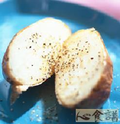 马铃薯1颗,奶油1大匙,大蒜盐1小匙,黑胡椒粉1小匙
