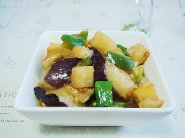 主料:茄子,150克,土豆(黄皮)100克,柿子椒50克,青椒50克,
