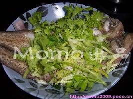 塌沙鱼1条,香芹适量,葱段适量,盐适量,生抽适量,熟油适量