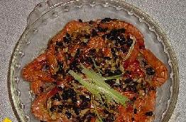 泡发好控干水份铺在盘底,鲜活草虾剃须洗澡开边后码在粉丝上。