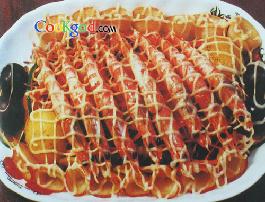 虾200g、梨块50g、苹果50g、西红柿50g、胡萝卜丝30g、圆葱丝20g。调料蛋黄沙拉酱沙拉酱
