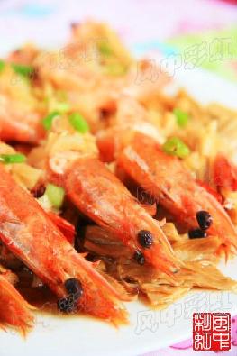 大虾8只,干腐竹30克,香葱碎适量,调料:蒜蓉,生抽,料酒,香油