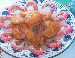虾腐要大小均匀,以小火煎制,大虾煮熟即可,不能过火。