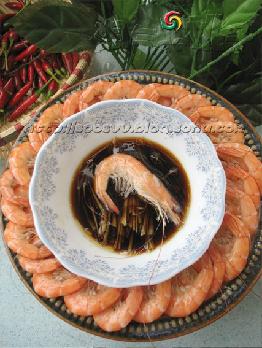 活虾400克(基围虾、青虾、白虾、河虾均可,,盐1茶匙(5克),黄酒1汤匙(15ml),海鲜酱油1汤匙(15ml),陈醋1汤匙(15ml),白糖1茶匙(5克),芥末油1茶匙(5ml),色拉油1茶匙(5ml),冰水一盆,姜丝
