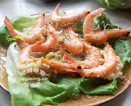 材料:鲜虾,调料:蒜蓉,植物油,盐,糖
