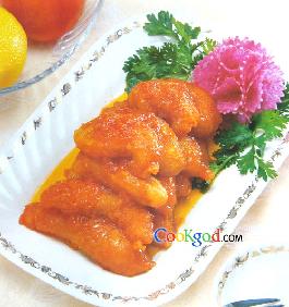 色泽红亮,酥脆细嫩,酸甜可口。