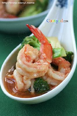 草虾20只 西兰花1棵 大蒜半头调料:曲酒1茶匙(5ml)盐1/4茶匙(1克)蚝油2汤匙(30ml)美极鲜味汁1汤匙(15ml)清水4汤匙(60ml)