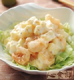 3.热油锅,将作法2的虾球沾裹上太****,放入油锅中炸约2分钟后捞出沥油,备用。