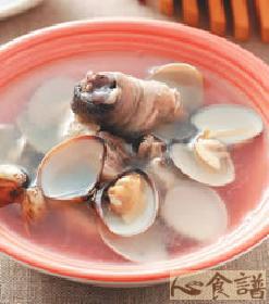 土鸡1/4只,蛤蜊10粒,老姜30公克,水600㏄,盐1小匙,米酒1大匙