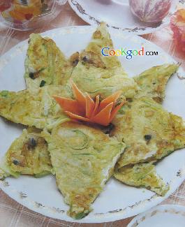 ③锅内注油烧热,下入面糊摊开,煎至两面金黄即可。