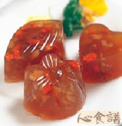 3.将作法2的材料盛入模具中,放入电锅蒸约20分钟,取出放入冰箱冷藏即可。