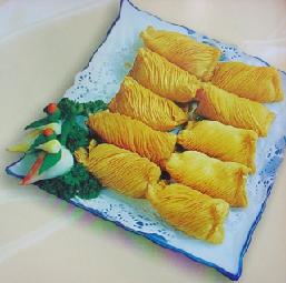 雪蛤用糖腌制半小时后,取出滤干,放进奶黄里拌匀,做成馅料备用。用美玫面粉和牛油加猪油、薯仔粉和胡萝卜汁一起拌匀,置平底盆放进冰箱冻1小时,做成油皮。用美玫面粉和猪油拌匀,置平底盘放进冰箱冻1小时,做成水皮。把油皮和水皮取出,反复重叠3次,然后用刀斜切,用擀杖擀成皮,包进馅料,放进油温180℃锅里炸,炸至金红色,取出装盆即食。