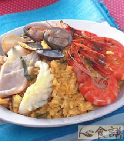 蒜末3公克,洋葱丁20公克,西芹丁10公克,鱼片100公克,鲜虾4只,蛤蜊6个,花枝40公克,义大利米100公克,郁金香粉2公克,九层塔丝1大匙,鱼高汤500㏄,橄榄油20㏄,盐1/4茶匙,白酒50㏄