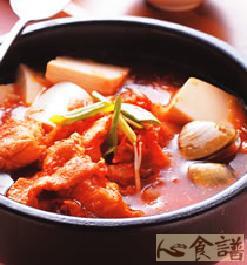 猪肉片200公克,板豆腐1块,韩国泡菜150公克,青葱1根,蛤蜊5个,丁香鱼高汤2000㏄,韩国味噌100克,细砂糖1大匙,辣椒酱1/2茶匙,姜泥1茶匙,米酒1茶匙