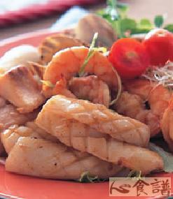 1.花枝洗净切片;虾仁洗净去肠泥,背部轻划一刀,备用。
