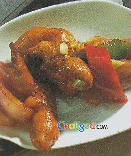 2、用面粉加水淀粉调成稠糊;小碗内加入绍酒、酱油、醋、白糖、精盐,味精、水淀粉调成芡汁备用。