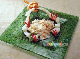 2、将响螺片、蟹子一起?5分钟,放在炒好的绿笋上即成。