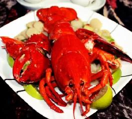 在龙 虾切口上均匀撒上芡粉; 将龙 虾段放入油锅中爆炒,虾壳变红后取出;