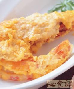 带壳大明虾1只,熟蛋黄50公克,水30公克,糖15公克,鸡粉8公克