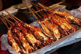(2)把腌好的明虾放入装有虾油的玻璃盆内,移入150℃烤炉后,约烤8分钟(听到油吱吱声)取出。