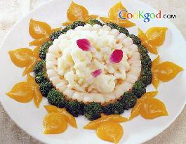 此菜选用渤海明虾肉,配以南瓜、冬瓜、西兰花,既丰富了口味,营养成分也更加全面。