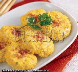 鲜嫩的河虾仁晶莹剔透,细细地斩成糜,加入清脆的马蹄,裹上蛋黄糕,一朵朵娇艳欲滴的芍药花让餐桌顿时生动起来。