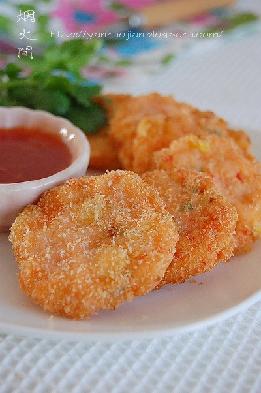 5.炸至虾饼表面金黄,取出沥干油份即可。