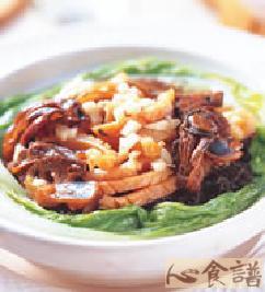 2.将墨鱼干和蚝干泡水1小时,沥干后放入锅中,加入蒸料和髮菜以中火蒸40分钟。