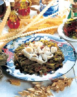 地道的墨鱼面是用墨鱼汁做成的,据说有防癌的效果,但做起来非常麻烦,可以用其它意大利面代替,再加上新鲜墨鱼实料拌炒,也是墨鱼风味十足。