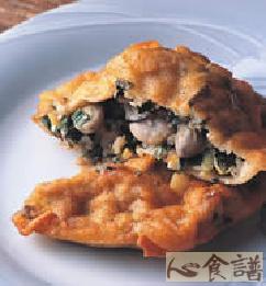 3.起油锅,油烧热约190℃,连平铲一起入锅炸至定形、酥黄,即可盛起搭配沾酱食用。