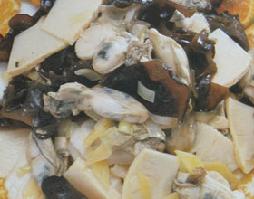 主料:牡蛎(鲜)250克, 辅料:木耳(干)10克,竹笋50克, 调料:酱油3克,料酒3克,盐3克,大葱7克,姜4克