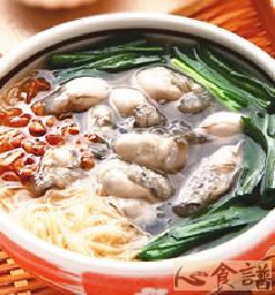 红面线200公克,新鲜蚵仔200公克,韭菜60公克,红葱油适量,地瓜粉适量,盐1/2小匙,鸡粉1/2小匙,胡椒粉少许