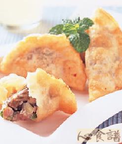 4.热一油锅加热至150℃,将作法3包好的蚵仔饺放入油锅中油炸2分钟后,转大火略炸一下让其表皮更酥脆即可取出。