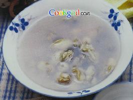3、将牡蛎、药汁、莲子(连浸泡液)一起放锅内,小火炖至莲子熟烂,加白糖食用。
