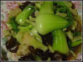 3,热锅烫油,入上海青翻炒,再入双耳翻炒;