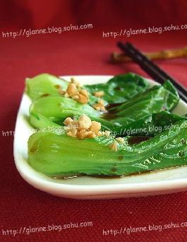 3.看见油菜便软时,立即捞出放入凉水中浸泡;