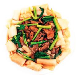 趖5两,牛里肌肉4两,芥兰菜4两,青葱1支,蒜头2粒,蚝油2大匙,酱油1茶匙,糖1/2茶匙,米酒1茶匙