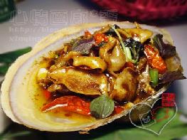 老大对我的手艺不放心,要亲自出马来料理,呵呵,我巴不得,吃现成滴几好! 不过前期处理都是我了,实话,河蚌这东西清洗起来要点工夫了。要先将它的鳃和泥肠挑除不要,然后再用盐反复的搓洗掉黏液,再就是烧开水焯一下……(此处省略200字),不轻松啊~还好不归我挥铲子了!