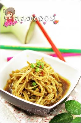 金针菇价格不菲,如果烹饪的时候不讲究,反而容易造成浪费,最安全的吃法就是用来凉拌啦,普通的生抽蒜蓉白糖调一调,再加点点绿色的蒜苔,绝对是夏天一道很美的凉菜。
