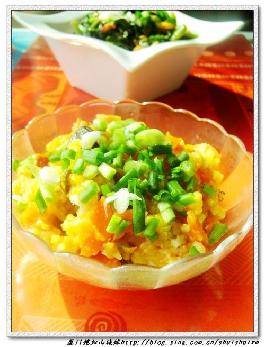 自从两个孩子住进我家之后,我和妈妈的生活变得更加充实而忙碌。水水如今正忙于适应这个“代理妈妈”的角色,这才发现:母亲真是世界上最伟大的人啊!太不容易了~~~~~~~~前段时间,最让我和妈妈头疼的就是这两孩子的吃饭问题:一个贪食,一个挑食;一个爱甜食,一个爱煎炸;一个不爱吃水果,一个不爱吃蔬菜。。。。。为了纠正他两偏食挑食的习惯,们母女俩可谓是绞尽脑汁,用尽了千方百计,可算是折腾惨了。好在,这番折腾还算卓有成效,如今,两孩子每餐都把水水倒腾的一堆不靠谱的饭菜吃了个精光,嘿嘿——刚过来我家的时候,两孩子都不爱吃南瓜——我家那个天天嚷着要“减肥”的孩子,简直对南瓜“深恶痛绝”。但南瓜中含有丰富的锌,是生长发育期孩子很理想的食物,还能养胃解毒。为了让他两多吃南瓜,水水在家折腾了这么一碗香喷喷的南瓜葱香饭——加入了少许蚝油,黑胡椒,还有几滴香油,大受欢迎! 这可极大的鼓舞了我将“代理妈妈”的角色进行下去哈,嘿嘿——