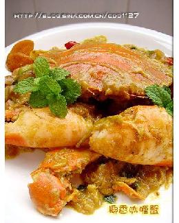 螃蟹1只,葱段,洋葱,蒜,辣椒,牛奶5大勺,椰浆5大勺,水5大勺,耗油1/2大勺,咖喱块1块,咖喱粉1/2大勺,盐,糖,鸡精少许(大家试试试味道自己喜欢就好)