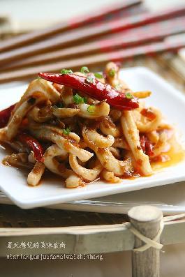 些,别把鱿鱼炒老了,怕辣的可以少放干红椒