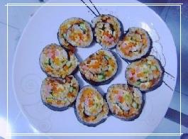 原料:米饭,黄瓜,胡萝卜,鸡蛋,火腿,寿司海苔