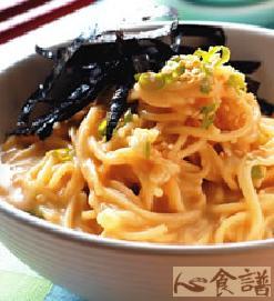 面150公克,白芝麻1茶匙,海苔丝少许,葱花1茶匙,热水80㏄,味噌80公克,糖1/2茶匙,鲣鱼酱油1/4茶匙