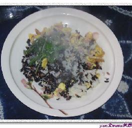 紫米50g,燕麦25g,大米50g,紫菜秸(这个估计只有江浙一带有,可以用任意绿叶蔬菜代替)若干,鸡蛋1个,火腿若干,油盐若干